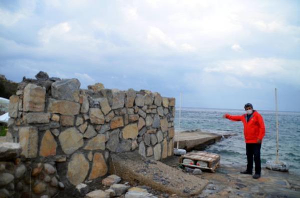 Hebil Koyu'nda örülen taş duvar, mühürlendiMUĞLA'nın Bodrum ilçesinde sahile, ruhsat alınmadan kaçak olarak örüldüğü ileri sürülen taş duvar, belediye ekiplerince mühürlendi.